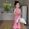 Meninas verão estilo coreano moda estilo ocidental terno de seda de gelo fina camisola infantil queimado calças de duas peças conjunto atacado