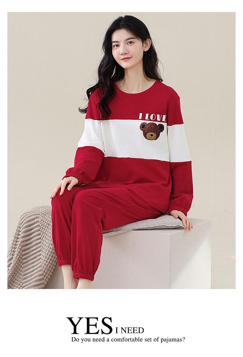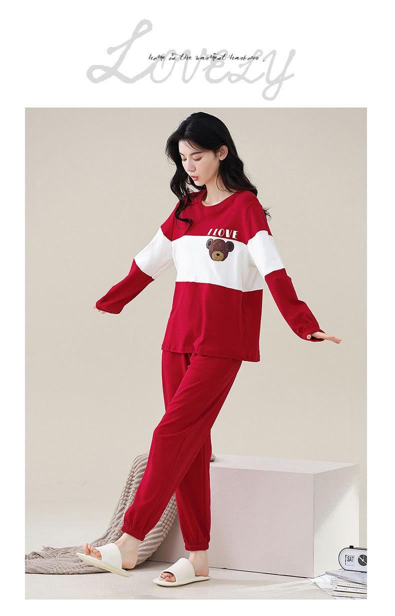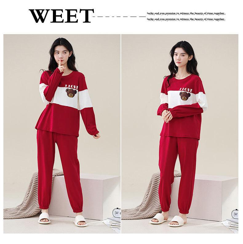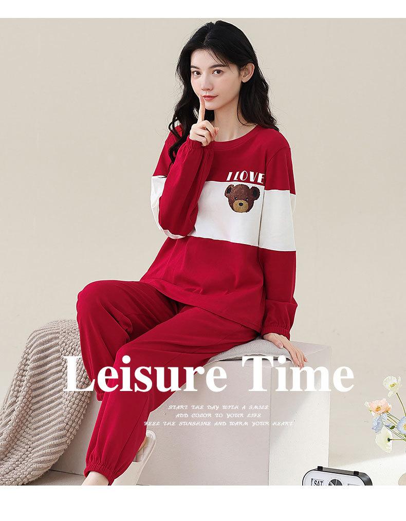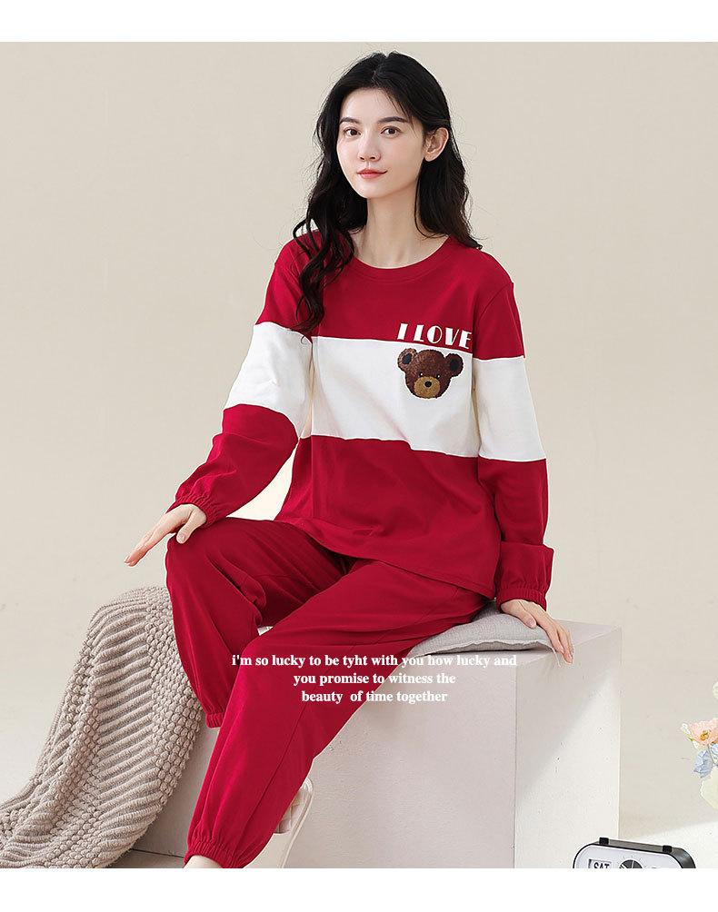 Pijamas femininos de algodão primavera e outono fino coreano casual desgaste doméstico outono novo manga comprida calças terno solto