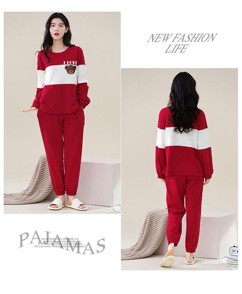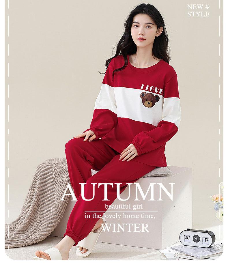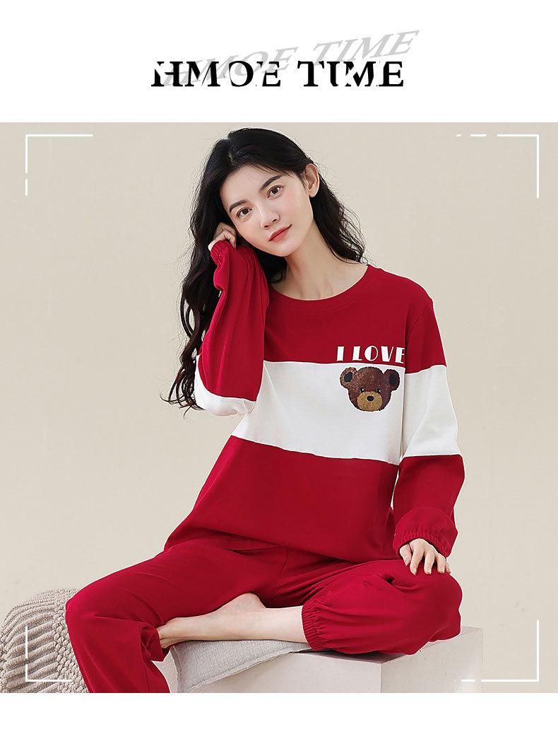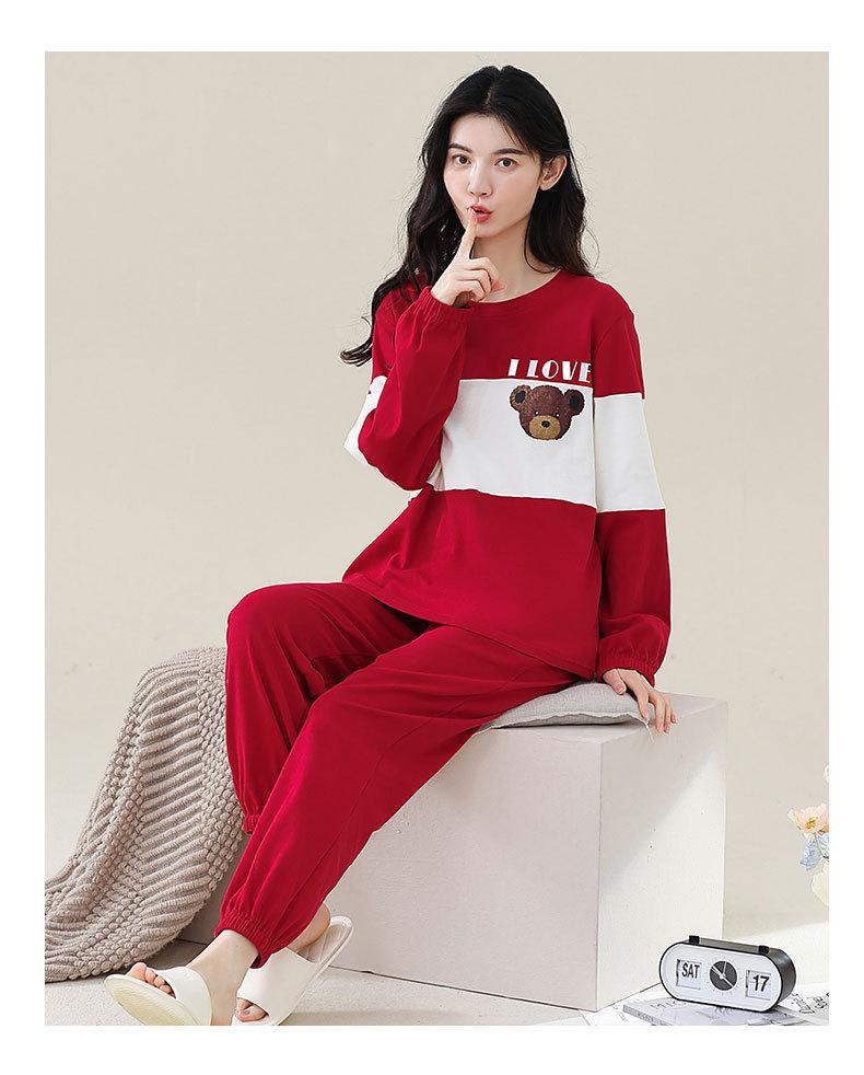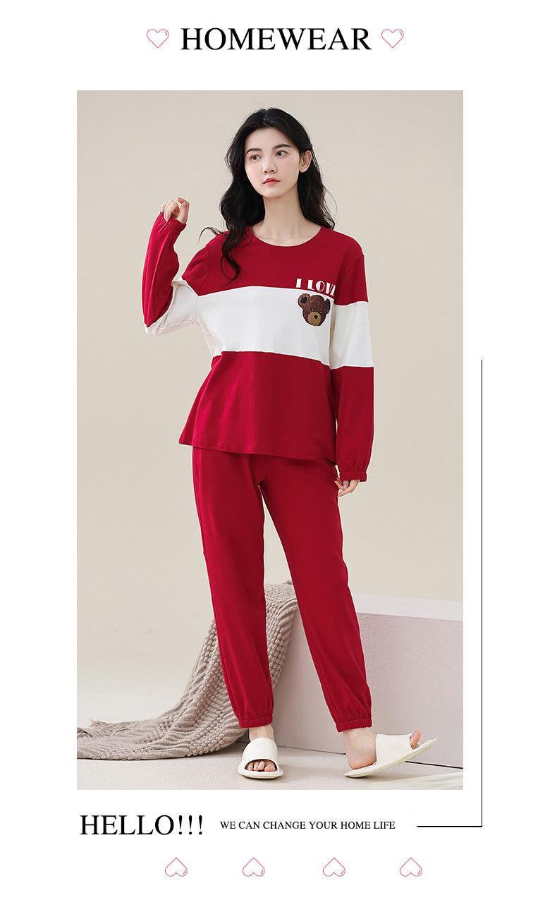 Pijamas femininos de algodão primavera e outono fino coreano casual desgaste doméstico outono novo manga comprida calças terno solto
