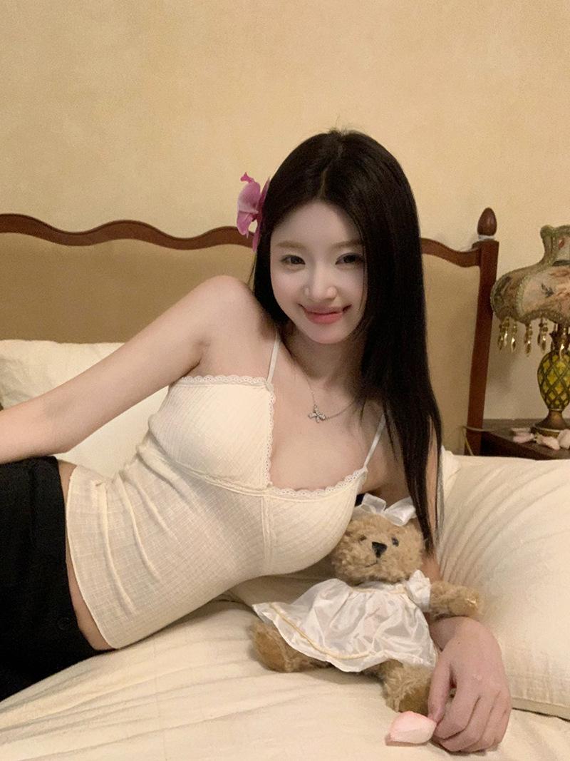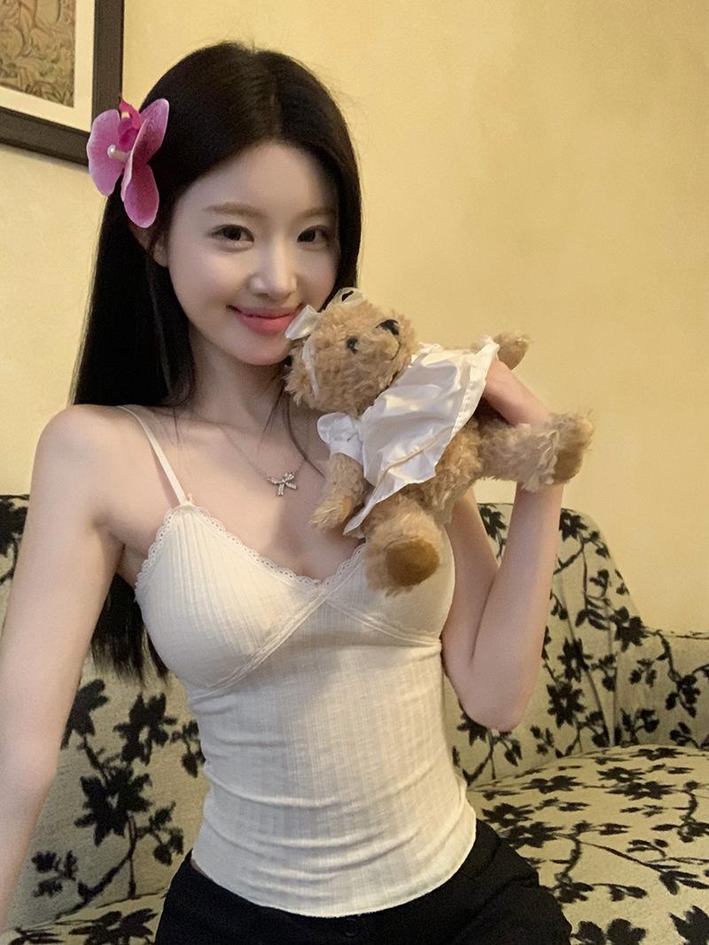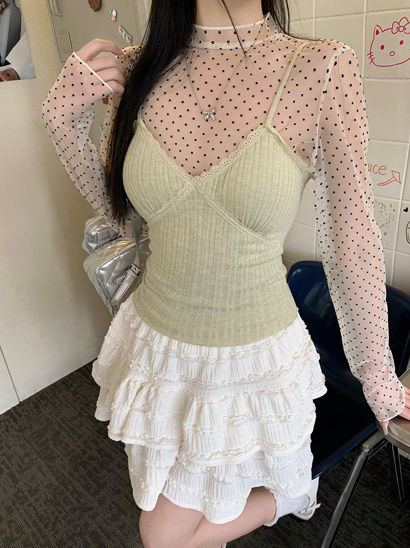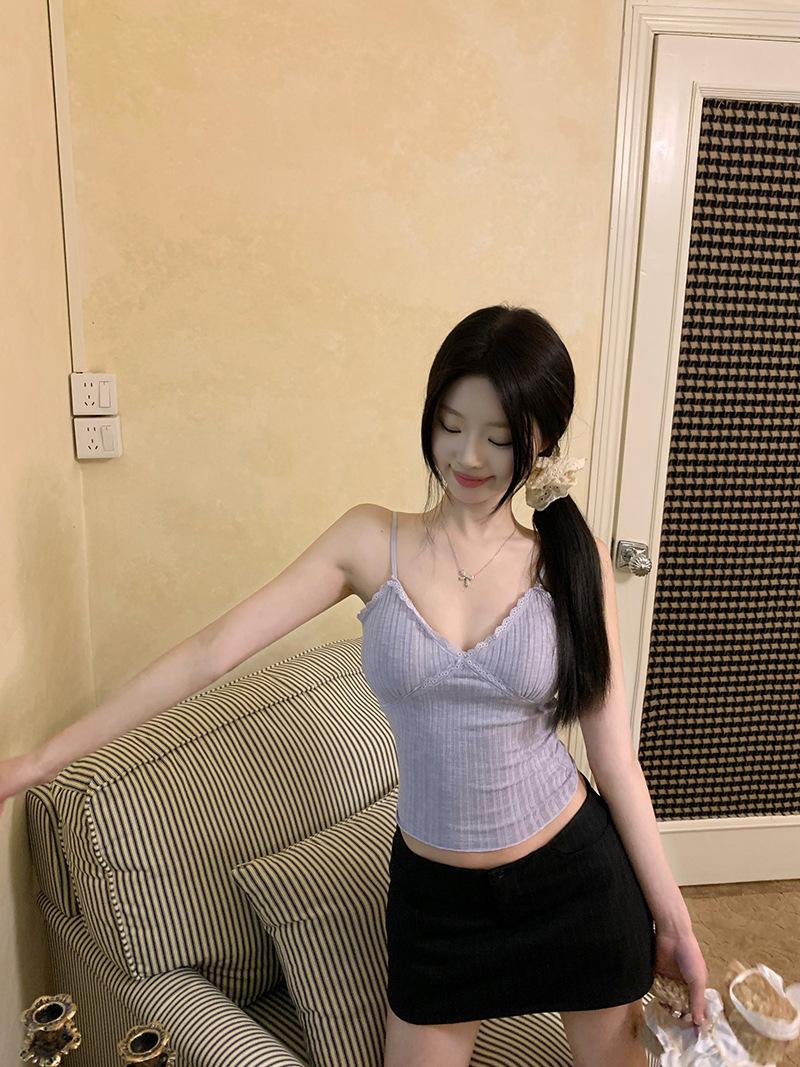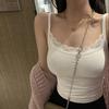 Renda BM Estilo Camisola Verão Francês Francês Doce e Picante Base Interna Roupa Externa Top Slim-fit com Almofada no Peito
