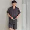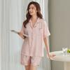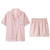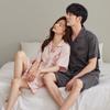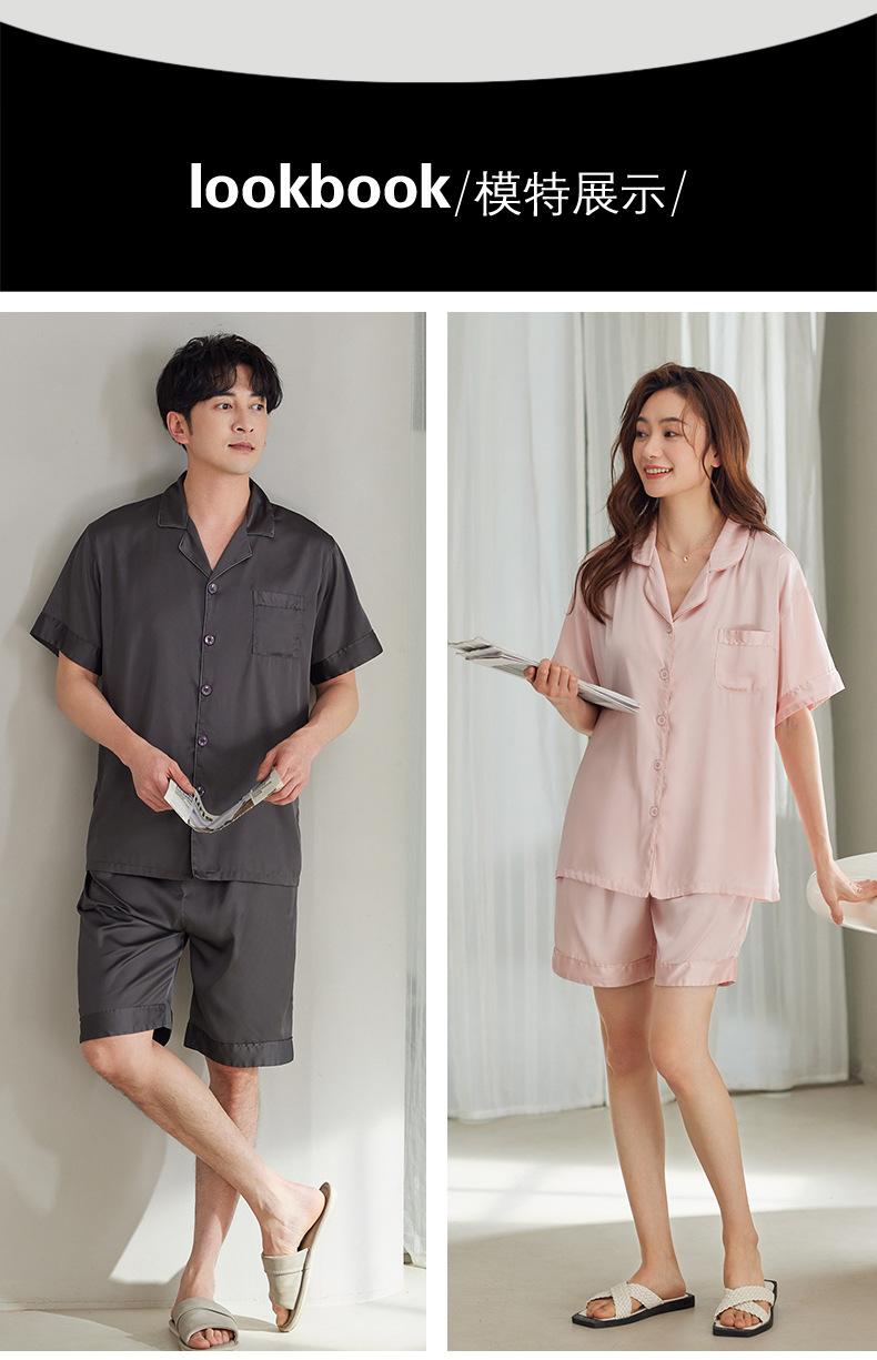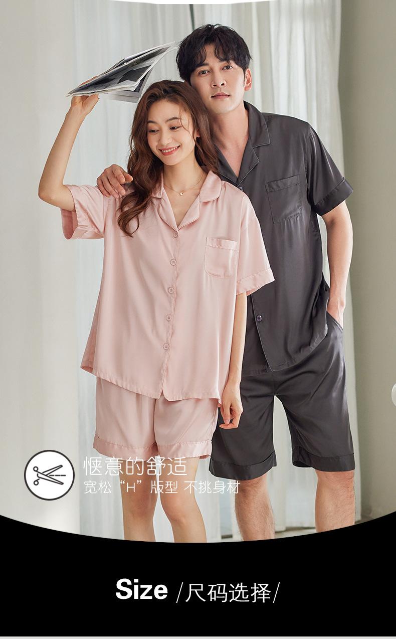 Pijama de casal Verão Feminino Seda Gelo Shorts de manga curta Fino Cool Cor Sólida Casual Tamanho Grande Solto Conjunto de Roupas para Casa