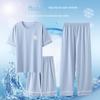 Pijama Modal Cool de Verão Conjunto de Duas Peças Feminino Shorts de Manga Curta Preto Casual Cool Outdoor Home Clothes