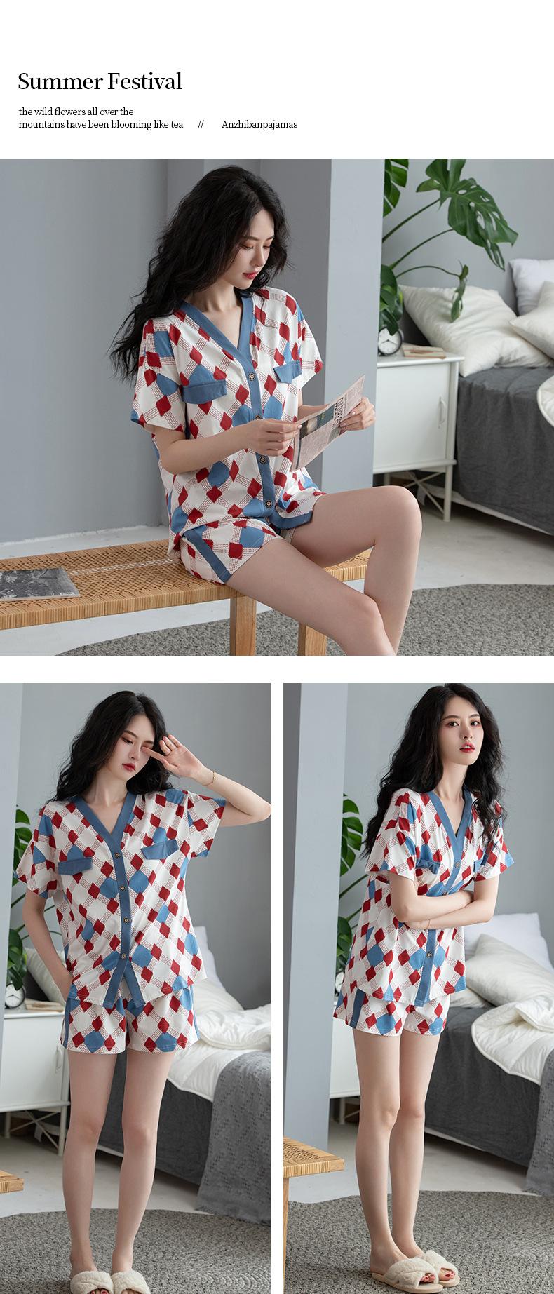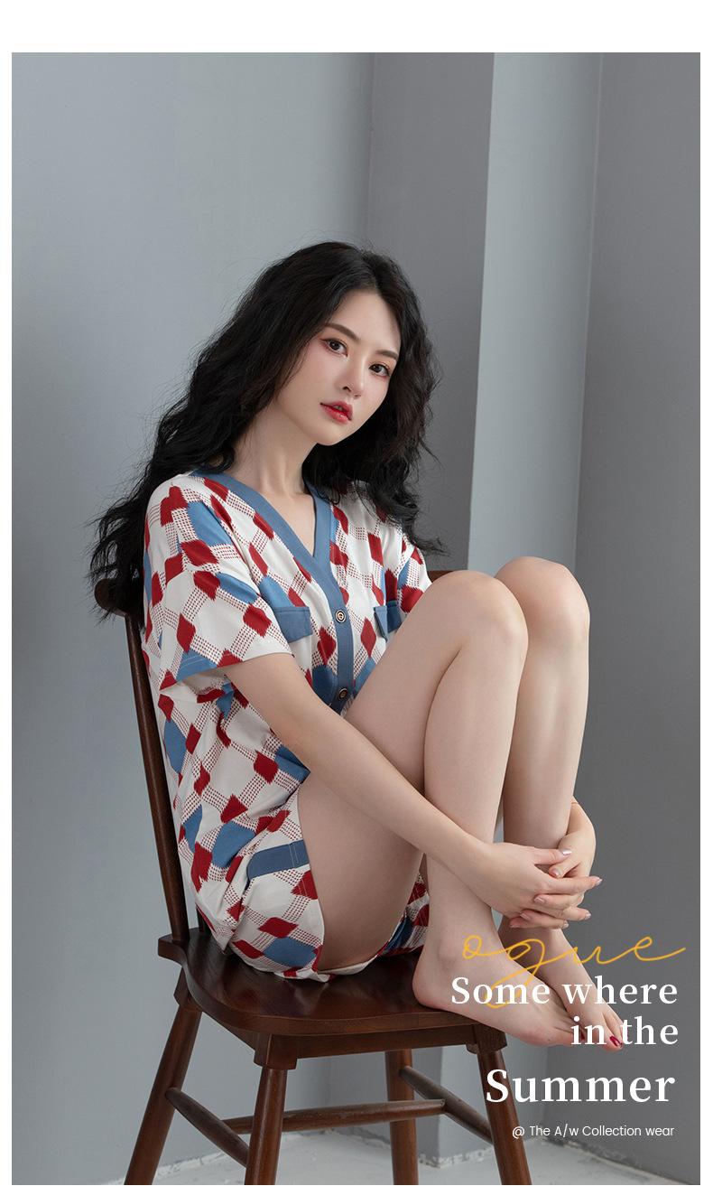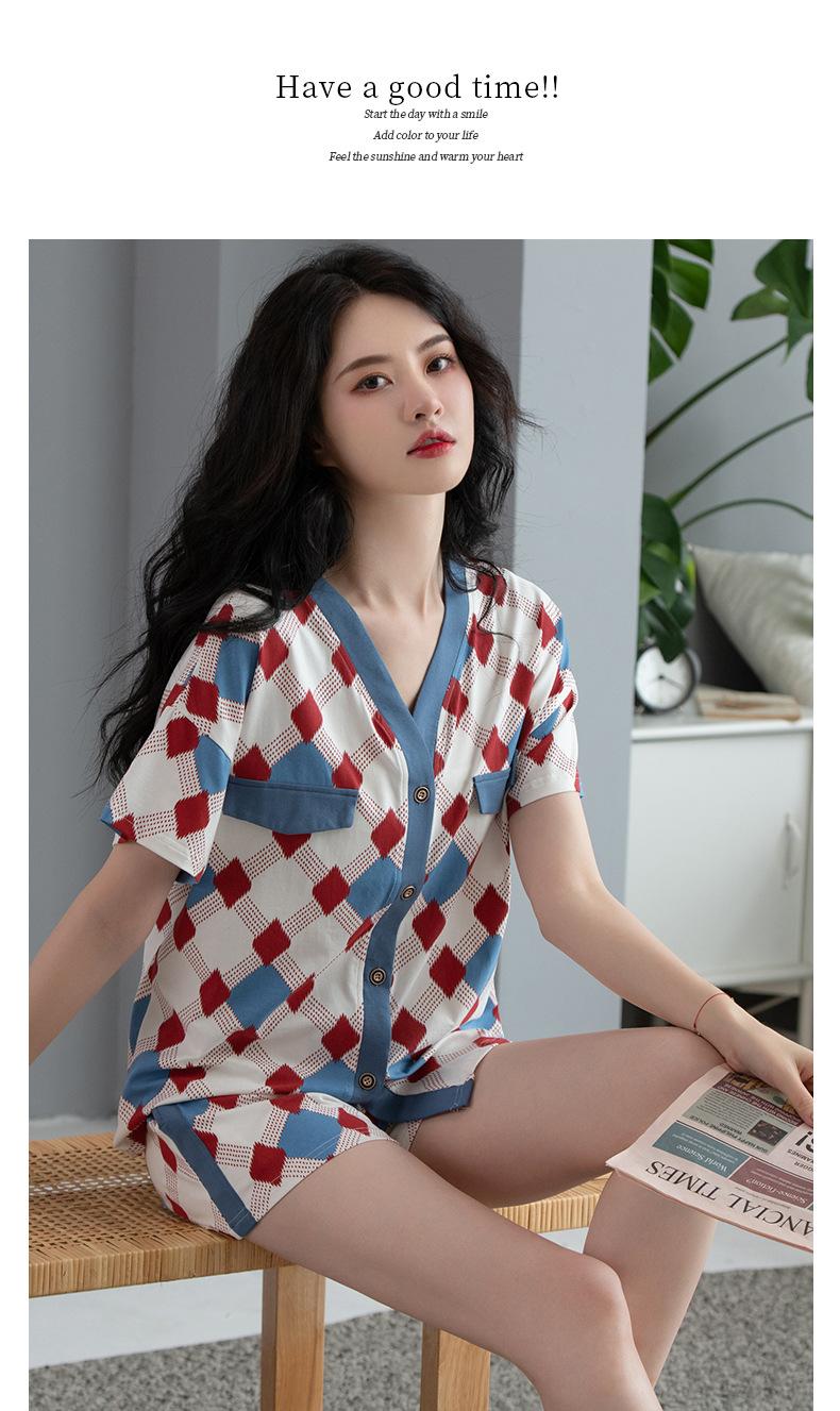 Pijamas Femininos Verão Modal Shorts de Manga Curta Conjunto de Cardigã Cool Confortável Verão Casual Ao Ar Livre Roupas Domésticas