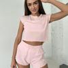 Europeu e Americano 2024 Nova Chegada Impresso Tricotado Solto Confortável Macio Shorts de Manga Curta Pijamas Terno Feminino Roupas Domésticas Transfronteiriças