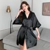 Pijama de seda de cor sólida da moda, camisola longa feminina, pijama sexy com cadarço, roupão de banho, roupas para casa