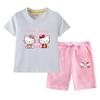 Conjunto de Verão para Meninas Hello Kitty Novo Verão Infantil Algodão para Meninas Camiseta de Manga Curta Shorts Conjunto Casual de Duas Peças