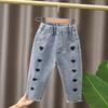 Jeans de perna reta para meninas Novo amor infantil bebê primavera e outono casual solto fino na moda calças da moda para crianças