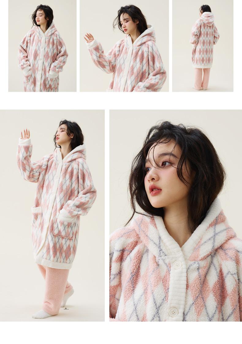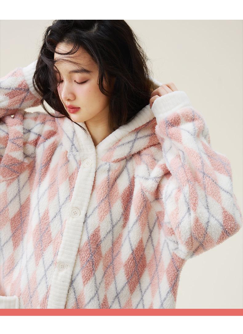 Spot New Outono e Inverno Coral Fleece Engrossado Homens e Mulheres Pijamas Terno Roupas Domésticas Terno pode ser usado ao ar livre no inverno