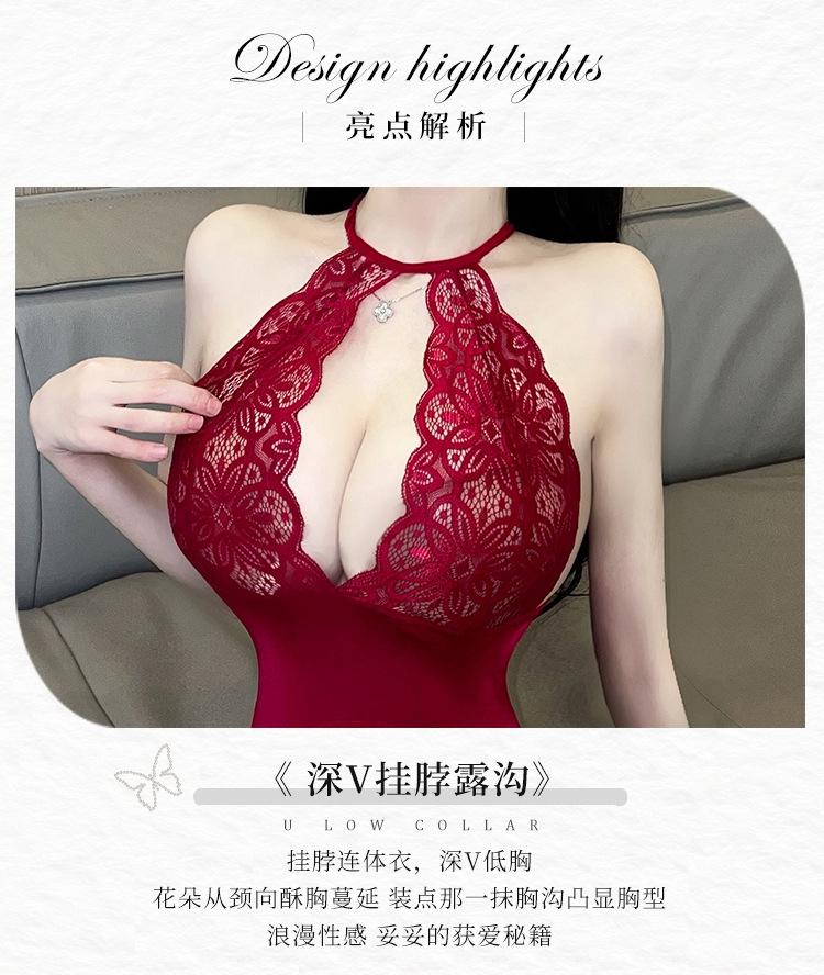 Lin linting sexy sexy lingerie tentação laço um- peça de água morta tentação oco out terno