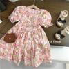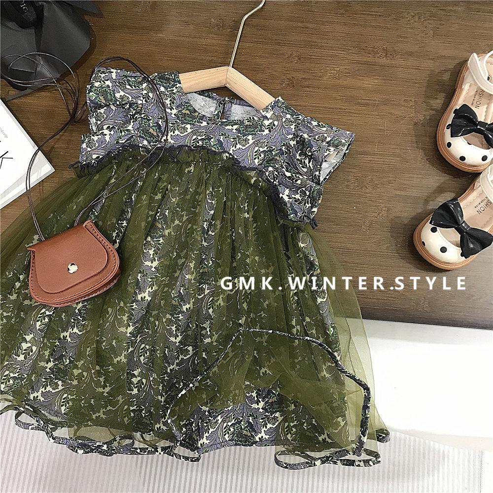 Vestido da menina coreana Verão Nova Moda Elegante Costura Gaze Vestido Infantil Bebê Floral Princesa Vestido Comércio Exterior