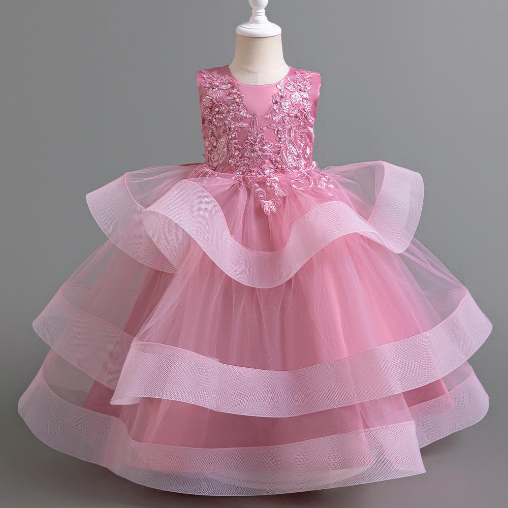 Vestido infantil Vestido de noiva para florista Vestido de princesa Vestido de lã fofa para meninas Vestido de apresentação de piano para apresentador de show de bebê
