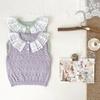Cutemily Crianças Wear Verão Meninas Colete Tricotado Tesouro Oco Renda Ruffle Collar Bonito Colete Fino