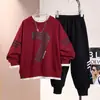 Crianças contos roupas infantis outono e inverno camisola de lã com capuz terno dos desenhos animados menino menina bebê terno de duas peças