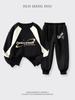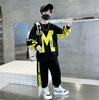 ins infantil versão coreana da moda de primavera e outono terno de menino com estampa completa de desenho animado estilo terry terno de duas peças infantil pequeno e médio