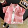 Verão 2025 Novas Blusas Infantis Camisas Jaquetas Estilo Coreano Camisas de Manga Curta Bebê 2 Roupas Infantis 0-1-3-4 e Meio Anos