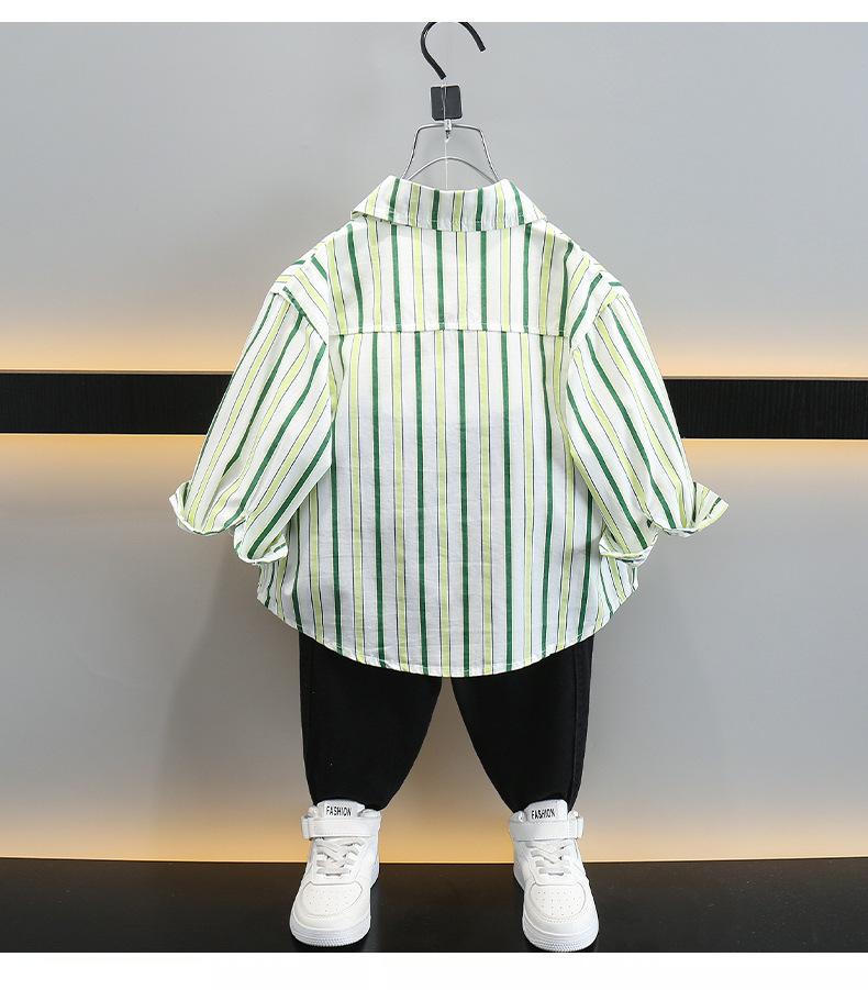 Camisa listrada dos meninos primavera e outono 2024 Novo bebê estilo ocidental camisa estilo coreano camisa infantil primavera fina manga comprida