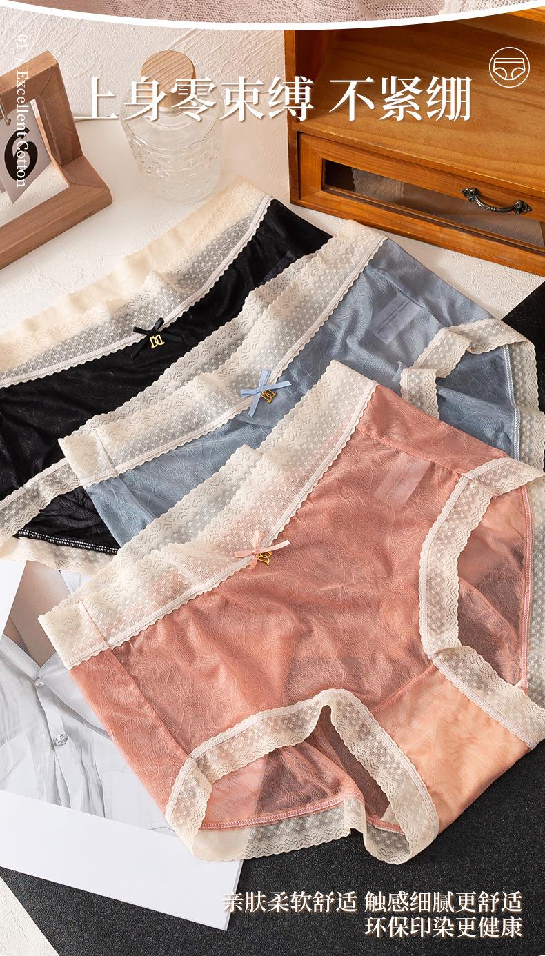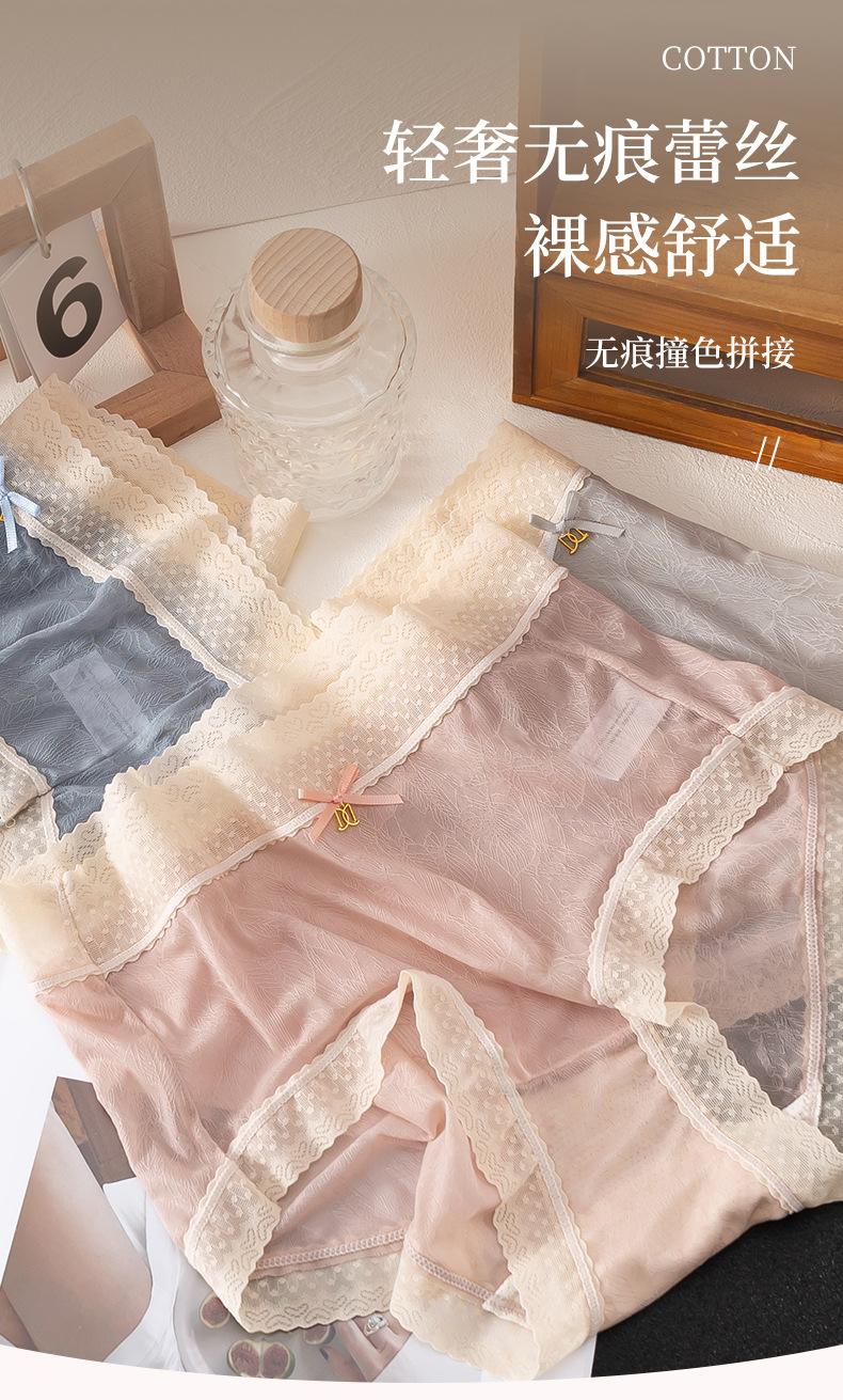 Francês puro sexy renda jacquard cuecas de tamanho grande algodão virilha antibacteriana cintura sem costura roupas íntimas senhoras atacado