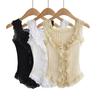Francês renda camisole mulheres cuidadosa máquina doce quente menina slim desgaste exterior com peito almofada sexy top