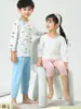 Pijama Infantil Verão Novo Estampa Cartoon Conjunto de Calça de Manga Três Quartos para Meninos para Crianças Pequenas e Médias Roupas de Casa Estudante Meninas