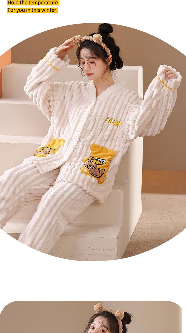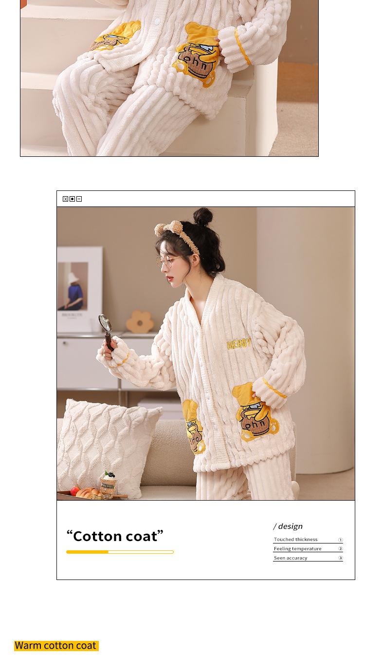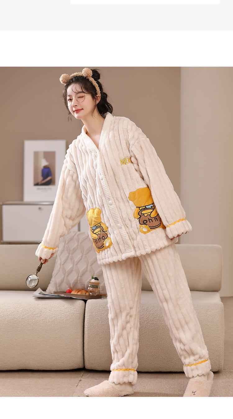 Pijama de flanela outono e inverno lã coral senhoras grosso quente desenho animado urso roupas de casa moda terno atacado