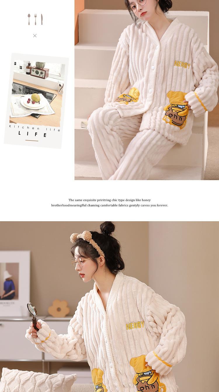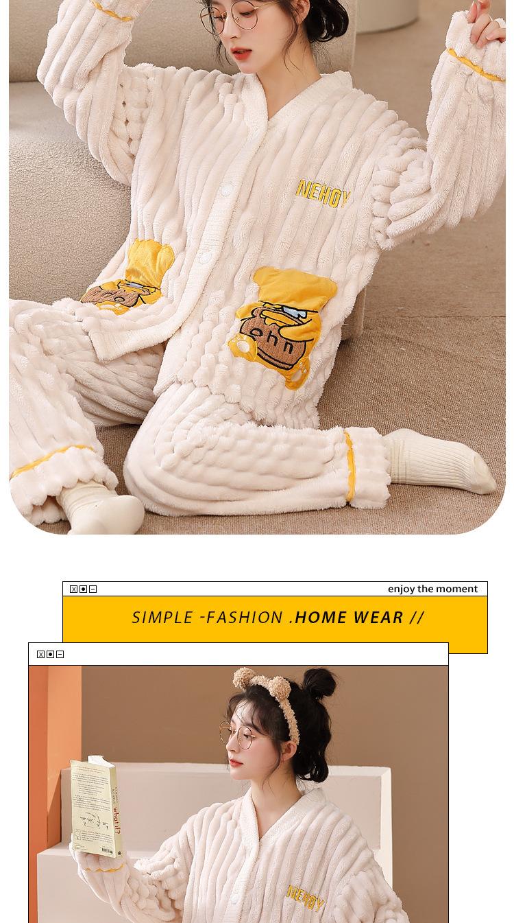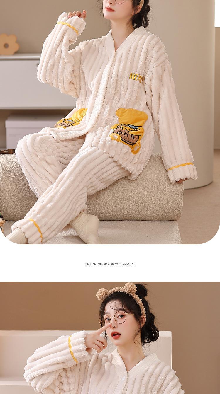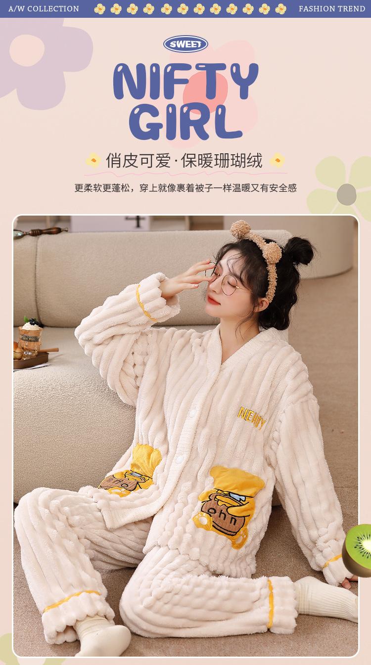 Pijama de flanela outono e inverno lã coral senhoras grosso quente desenho animado urso roupas de casa moda terno atacado