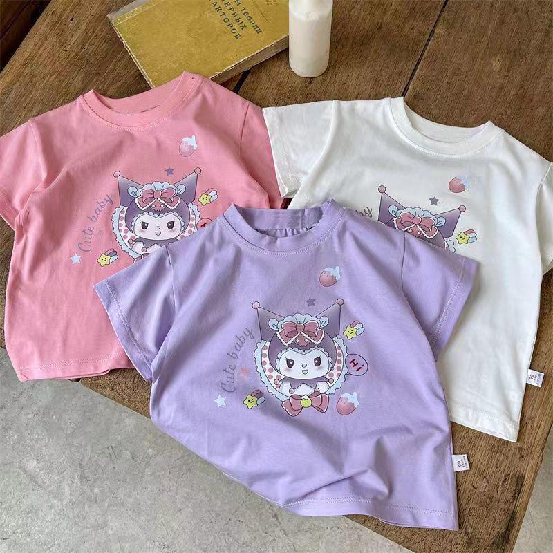 100 Algodão Desgaste Infantil Verão Novas Meninas Manga Curta T-Shirt Cartoon Print Bebê Kulomi Top Casual