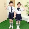 Roupas de jardim de infância Verão dos alunos da escola primária Novo uniforme escolar Graduação Foto esportes Terno de manga curta Roupas de classe infantil estilo britânico