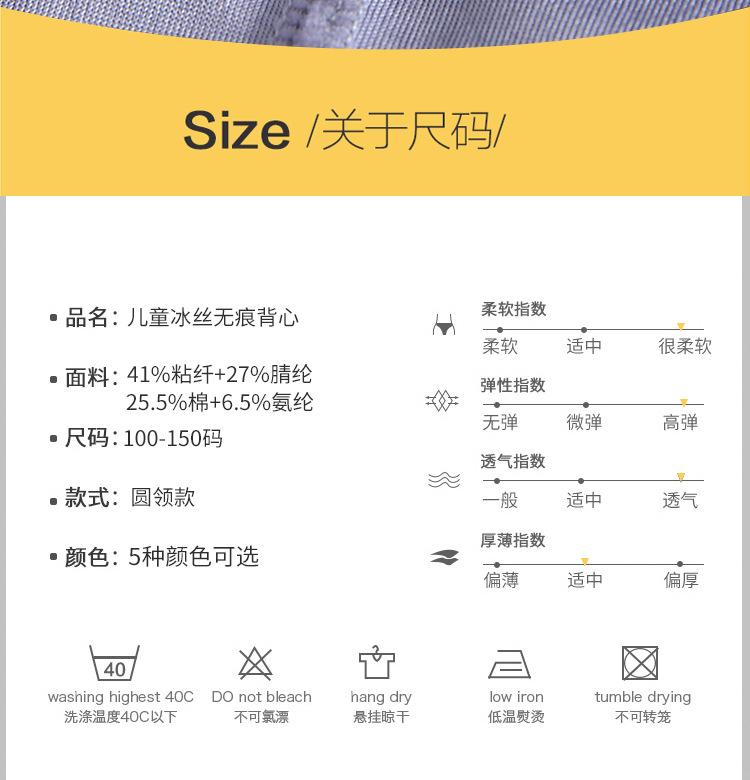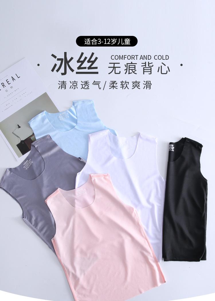 Colete de seda gelo sem costura infantil, fino, verão, meninos e meninas, roupas infantis, obstáculos de bebê, sem mangas, tipoia, colete pequeno, atacado