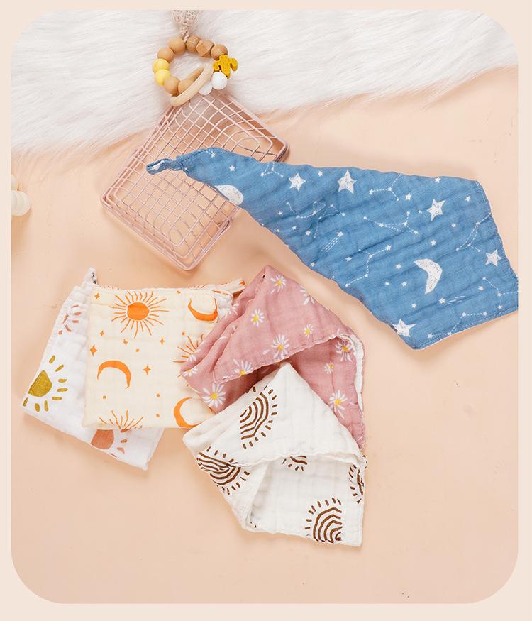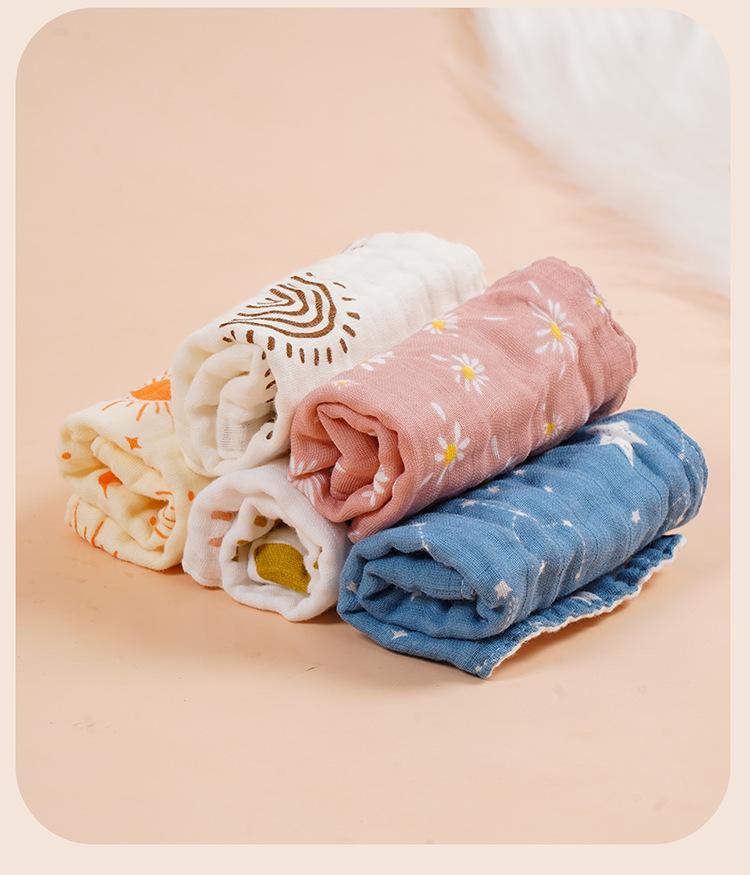 Kangobaby5 peças de algodão para bebês de quatro camadas gaze pequena toalha quadrada para bebê toalha quadrada de saliva toalha de arroto
