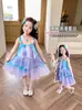 Vestido de Sereia para Meninas Vestido de Verão 2025 Novo Vestido Suspensório para Bebê Menina Fantasia de Apresentação para o Dia das Crianças Saia Infantil
