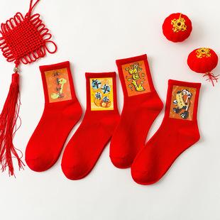 Novo estilo de meias vermelhas da sorte para o ano de nascimento, meias de estampagem a quente, casais de algodão penteado, meias femininas que não desbotam, meias masculinas, meias por atacado¥3,60¥4,32