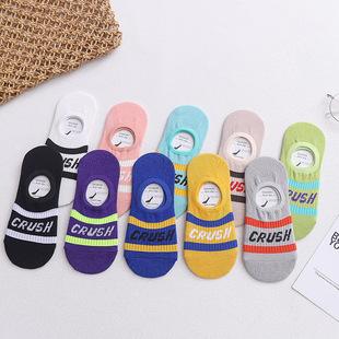 Meias femininas de personalidade com letras de primavera e verão, meias femininas de silicone antiderrapantes, meias invisíveis, meias elásticas no peito do pé, meias femininas casuais listradas em estoque¥1,58¥1,9