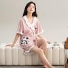 Pijama feminino de algodão de fábrica 7A, manga curta, shorts, com cadarço, decote em V, fino, roupa de verão para casa