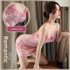 Pijama Sexy para Mulheres, Camisola Suspender Tentadora com Estampa de Leopardo Rosa, Renda Decote V Profundo Roupa Sexy Sexy com Bojos