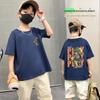 Meninos de manga curta verão novo solto casual gola redonda infantil bonito meia manga top moderno camiseta para crianças pequenas e médias e meninos