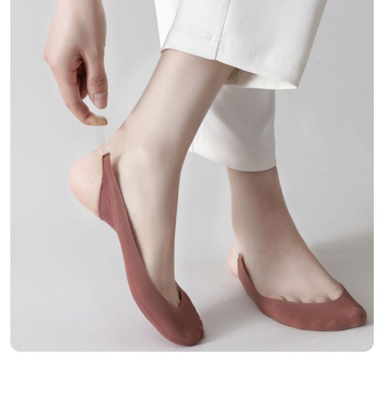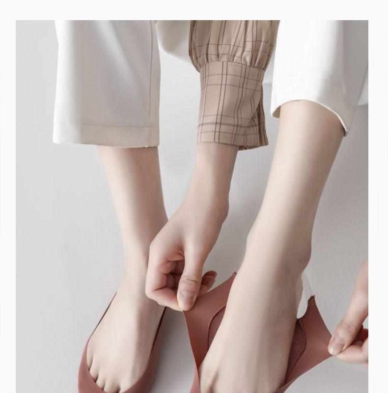 Meias de seda de gelo Meias de barco femininas Verão Fino Algodão Puro Fundo Boca rasa Silicone Antiderrapante Sapatos de pé dianteiro Meias invisíveis