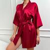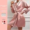 Novo Camisola de Seda Gelo Sexy para Usar Fora Roupa de Casa Feminina Imitação de Seda Cardigã Renda Amarrar Saia Slip Conjunto