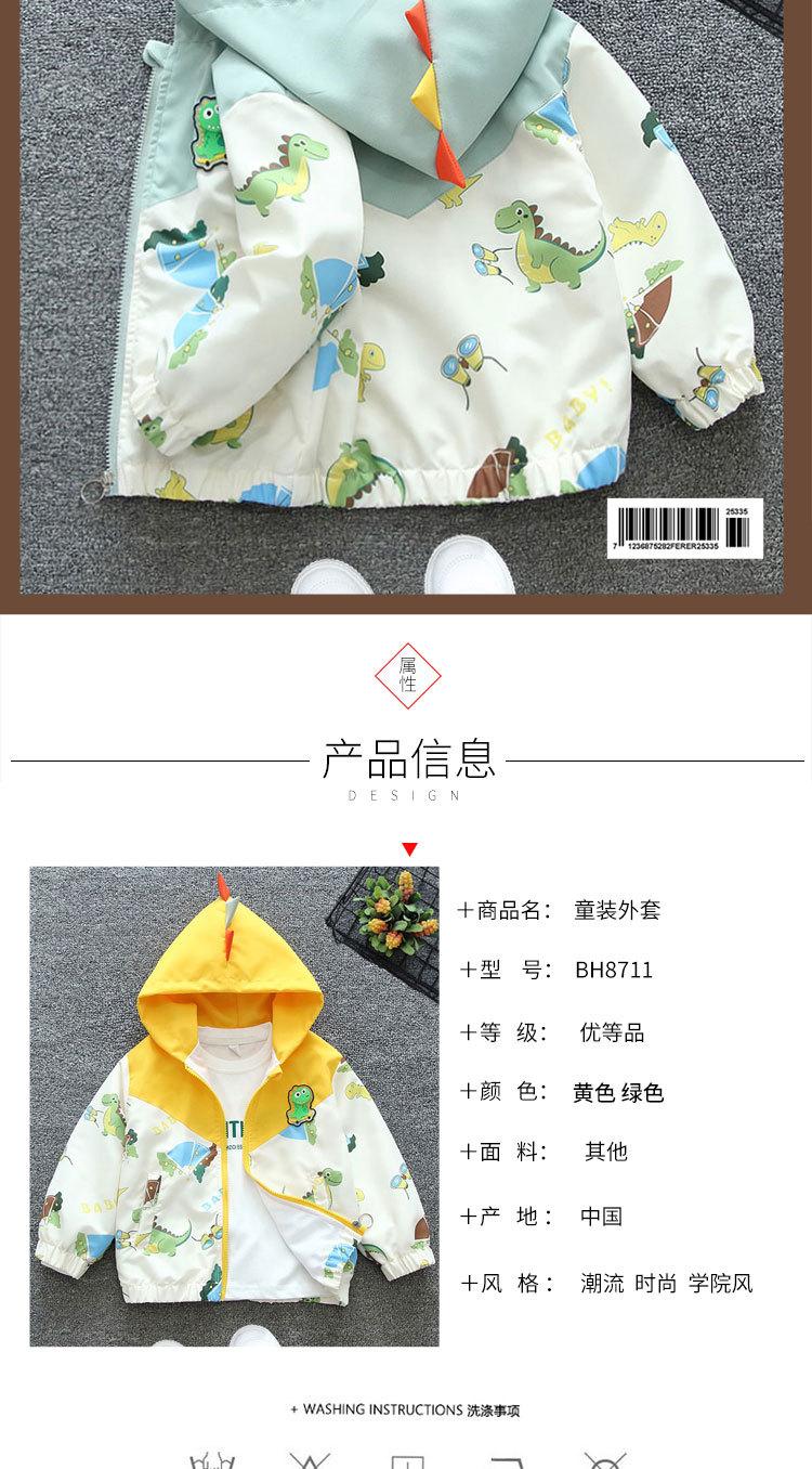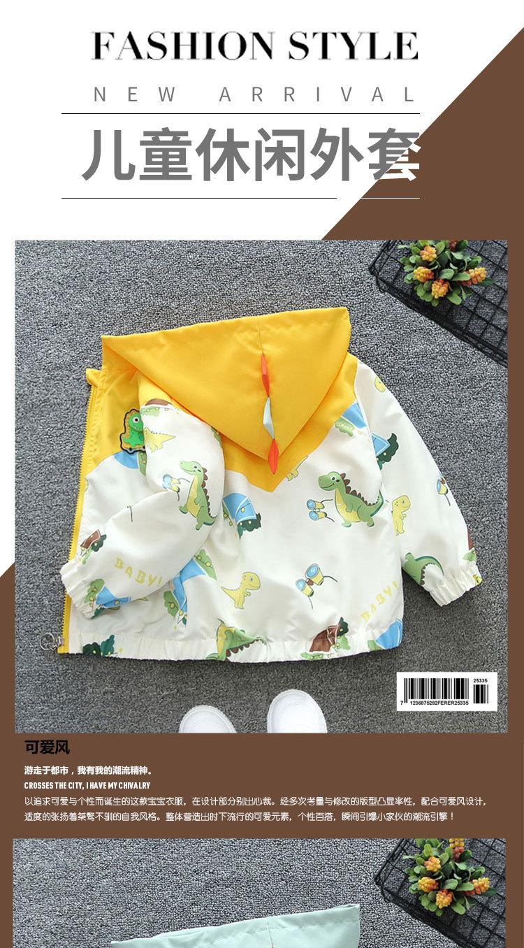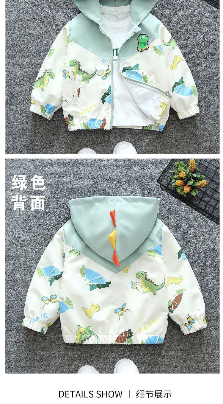 Roupa Infantil Meninos Jaqueta de Primavera Dinossauro 2025 Nova Estilosa Tendência para Meninos Jaqueta com Capuz para Primavera e Outono para Bebês e Crianças