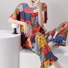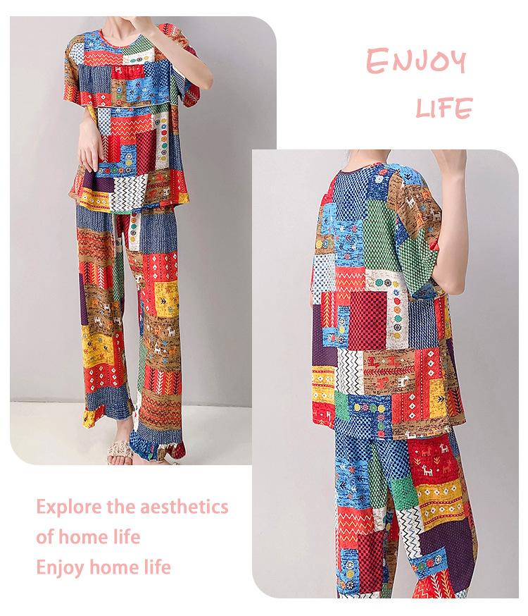 2023 novo pijama de seda de algodão feminino verão fino calças de manga curta terno solto estilo coreano fresco anti-colisão casa