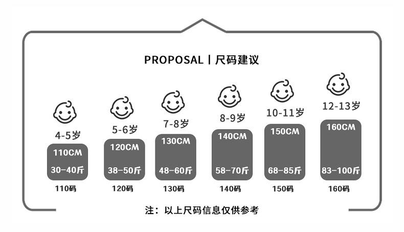 110cm, 120cm, 130cm, 140cm, 150cm, 160cm