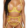 Mercadorias de Comércio Exterior Novo Conjunto Sexy de Três Peças com Liga de Renda Bordada de Malha Transparente Estampada W526 com Aro de Aço