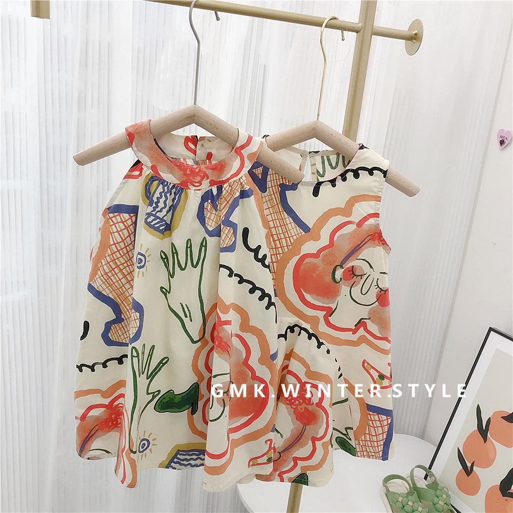 Meninas Elegante Vestido de Pescoço Verão Bebê Algodão Leve Respirável Vestido de Férias Saia Infantil Comércio Exterior
