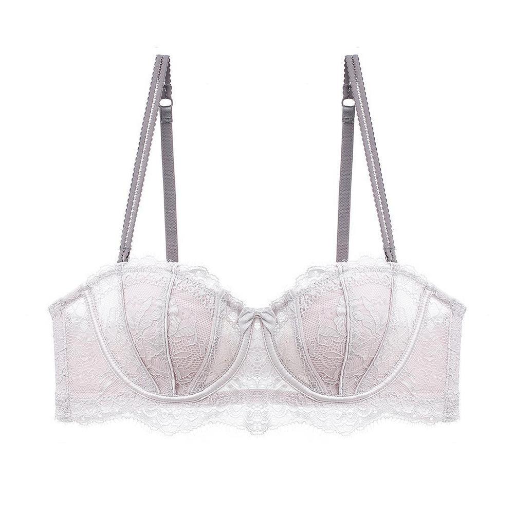 Compre Estilo francês 1/2 xícara sem alças sutiã de renda pura antiderrapante beleza de volta cueca peito grande pequeno sutiã sexy sutiã no atacado no Joom.pro