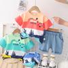 Infantil de manga curta terno de algodão meninas novas roupas de verão meninos t- camisa shorts bebê coreano meia manga roupas infantis atacado