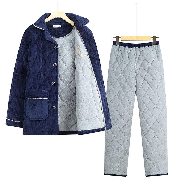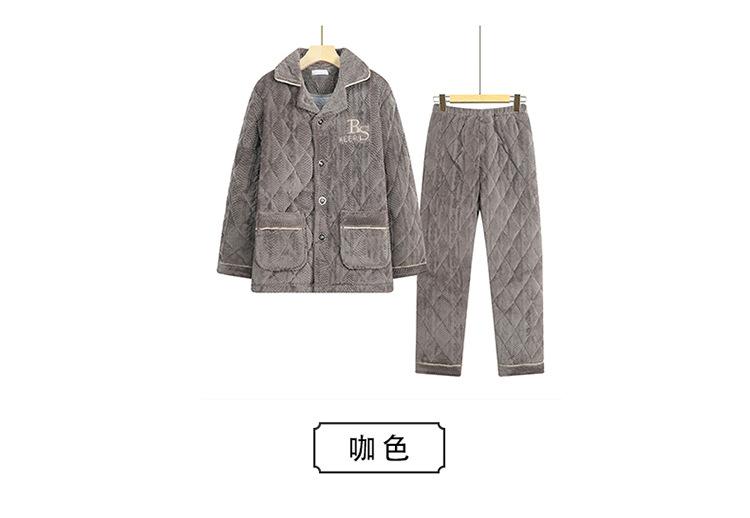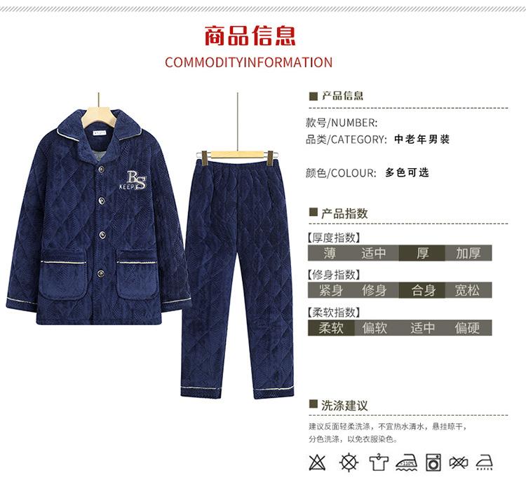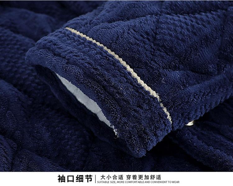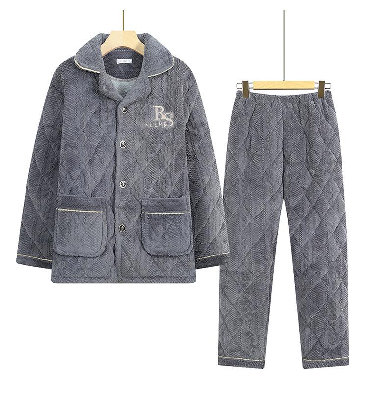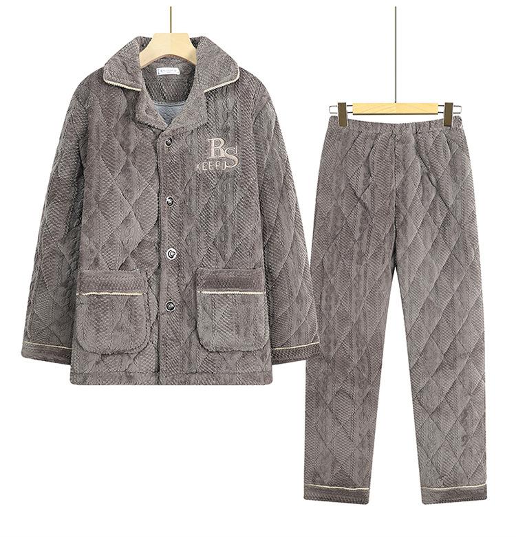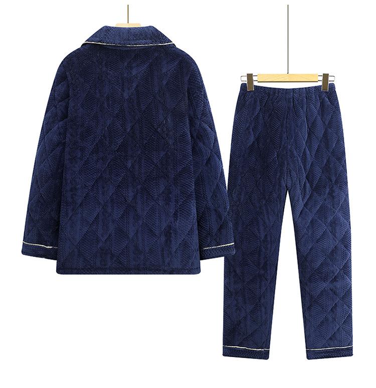 Pijama masculino inverno três camadas acolchoado engrossado forrado de lã quente roupa doméstica terno de flanela de meia-idade e pai idoso