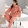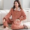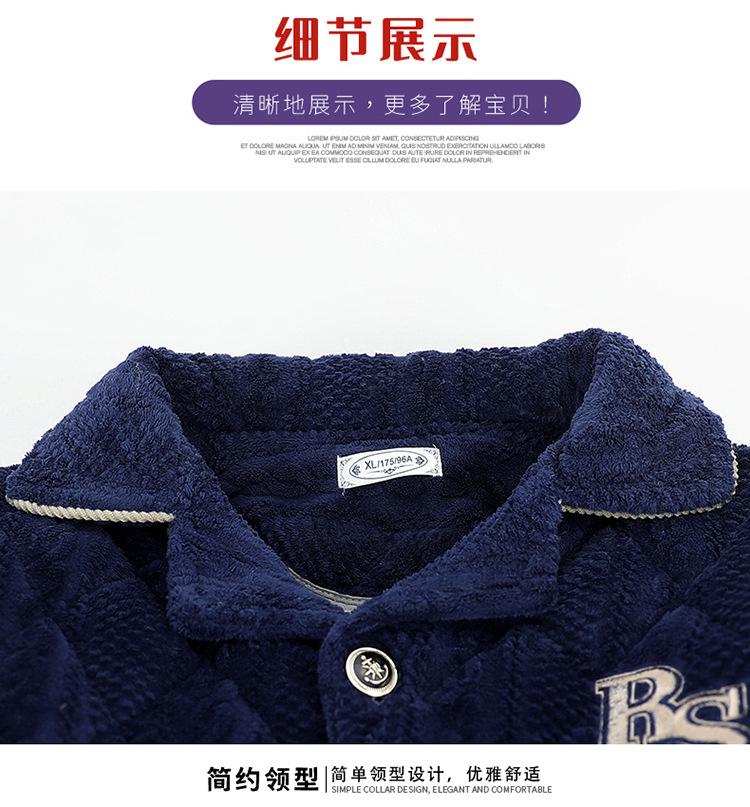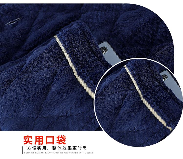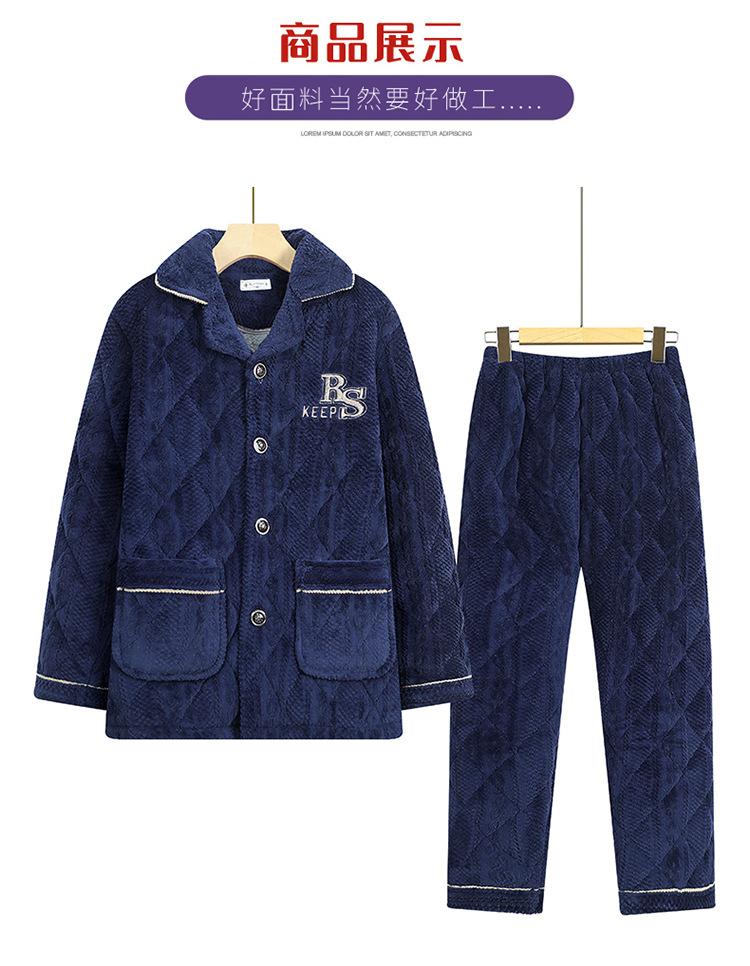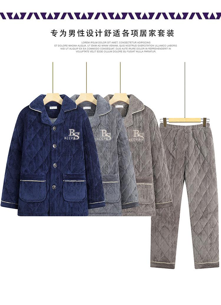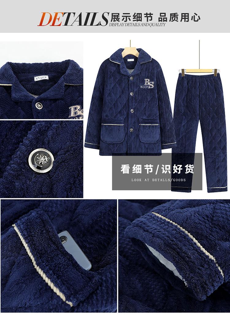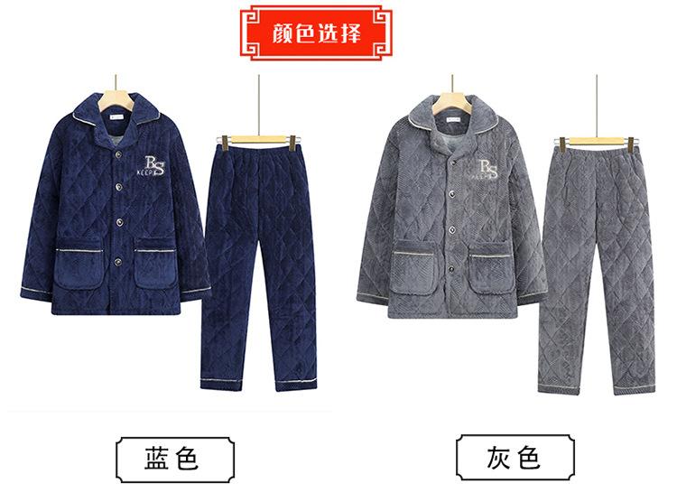 Pijama masculino inverno três camadas acolchoado engrossado forrado de lã quente roupa doméstica terno de flanela de meia-idade e pai idoso