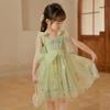 Vestido Bordado para Meninas Verão 2024 Europeu e Americano Vestido Doce de Princesa para Bebê de Um Ano Saia Suspender