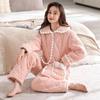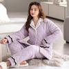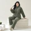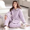 Novos pijamas femininos de inverno, quentes, três camadas, acolchoados, cardigan grosso, estilo casual simples, roupa de casa, terno feminino