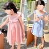 Vestido para Meninas com Mangas Bufantes e Pregas, Estilo Fresco Vestido Princesa, Novo Modelo Verão 2026, Roupas Infantis para Comércio Exterior Atacado