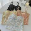 Estilo coreano doce camisola pequena feminina primavera 2024 nova chegada lantejoulas flash sem mangas roupa externa linda parte de trás top